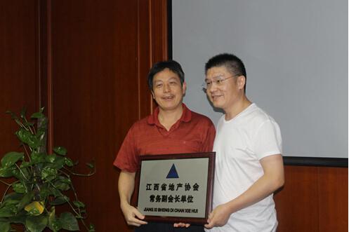 江西省地產(chǎn)協(xié)會會長章新明向董事長胡樂平授牌
