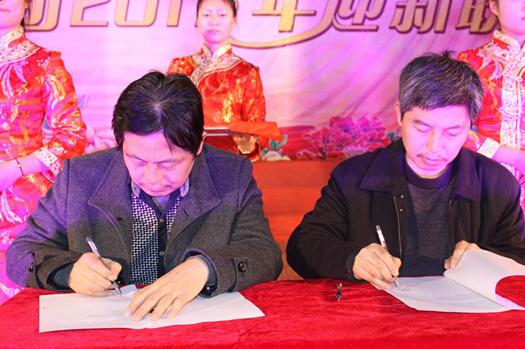 在聯(lián)歡會(huì)演出正式開始前,特別安排了集團(tuán)2015年經(jīng)營(yíng)工作目標(biāo)責(zé)任狀簽訂儀式,集團(tuán)董事長(zhǎng)胡樂平分別與集團(tuán)總部各部門負(fù)責(zé)人及下屬各單位代表簽訂了2015年度經(jīng)營(yíng)目標(biāo)責(zé)任狀。