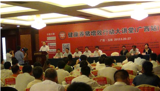 5月26日至27日,農(nóng)業(yè)部關(guān)于服務(wù)三農(nóng)的重要舉措之一“健康養(yǎng)豬增效行動大講堂(廣西站)”活動在廣西玉林召開,江西優(yōu)奇科技有限公司多爾金市場部經(jīng)理漆凌江、科普部經(jīng)理朱美德、響亮市場部業(yè)務(wù)經(jīng)理許愛褔以及萬科市場部業(yè)務(wù)經(jīng)理胡艷文等代表優(yōu)奇科技出席本次大講堂活動。